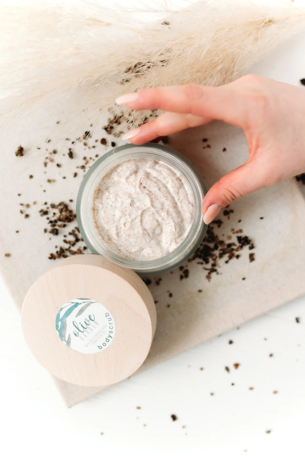 Piling sestavljajo koščice oljk, ki jih pridobimo med samim stiskanjem olja. Vsaka koščica vsebuje še okoli 6 % oljčnega olja, zato kože med samim postopkom ne poškoduje, temveč jo še dodatno neguje. Piling odstranjuje odmrlo kožo in hkrati hidrira kožo, zahvaljujoč prisotnosti ekstra deviškega oljčnega olja v formulaciji. Priporočamo po uporabi vročega tuša, tako se koža zmehča in je pripravljena na ‘scrubanje‘. Po postopku speremo z vodo. Srednja abrazivna gradacija koščic (2-3). Piling je veganski.